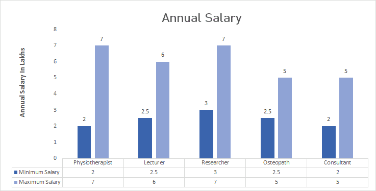 Successful graduates of the course are lucratively employed in areas such as hospitals, health institutes, fitness centers, private clinics, etc., with an average annual initial salary ranging between INR 2 and 8 Lacs, depending upon the candidate’s expertise in the field and relevant skillset.